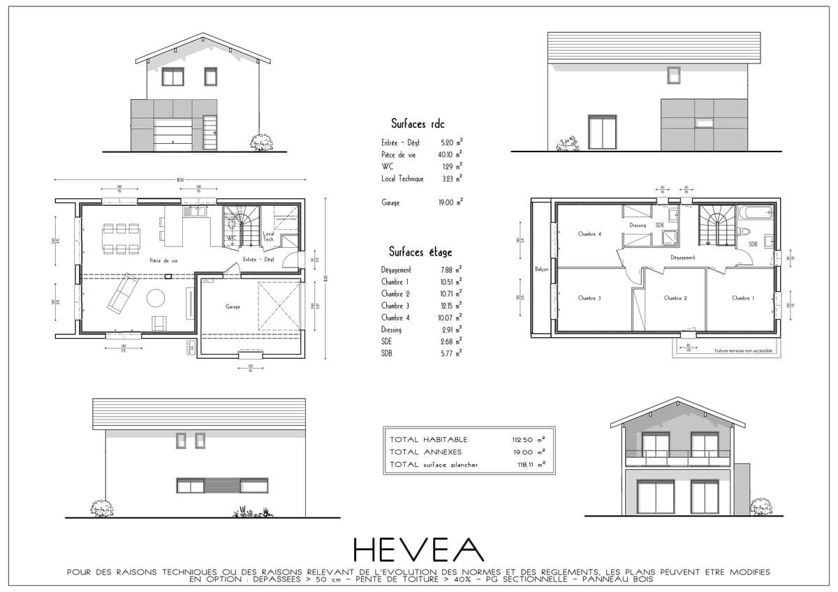 Vous avez un projet de construction et hésitez sur le choix du modèle de votre future maison ? Si vous disposez d’un terrain étroit, disposez-y l’Hévéa, elle s’y sentira à l’aise. Et vous bénéficierez tout de même d’un espace confortable. Cette maison contemporaine à étage offre une surface de 112 m² et loge 4 chambres, dont une suite parentale, avec un intérieur fonctionnel. Elle dispose de grandes ouvertures pour une luminosité optimale. Ce grand modèle aux dimensions généreuses est parfaitement adapté à la vie de famille.