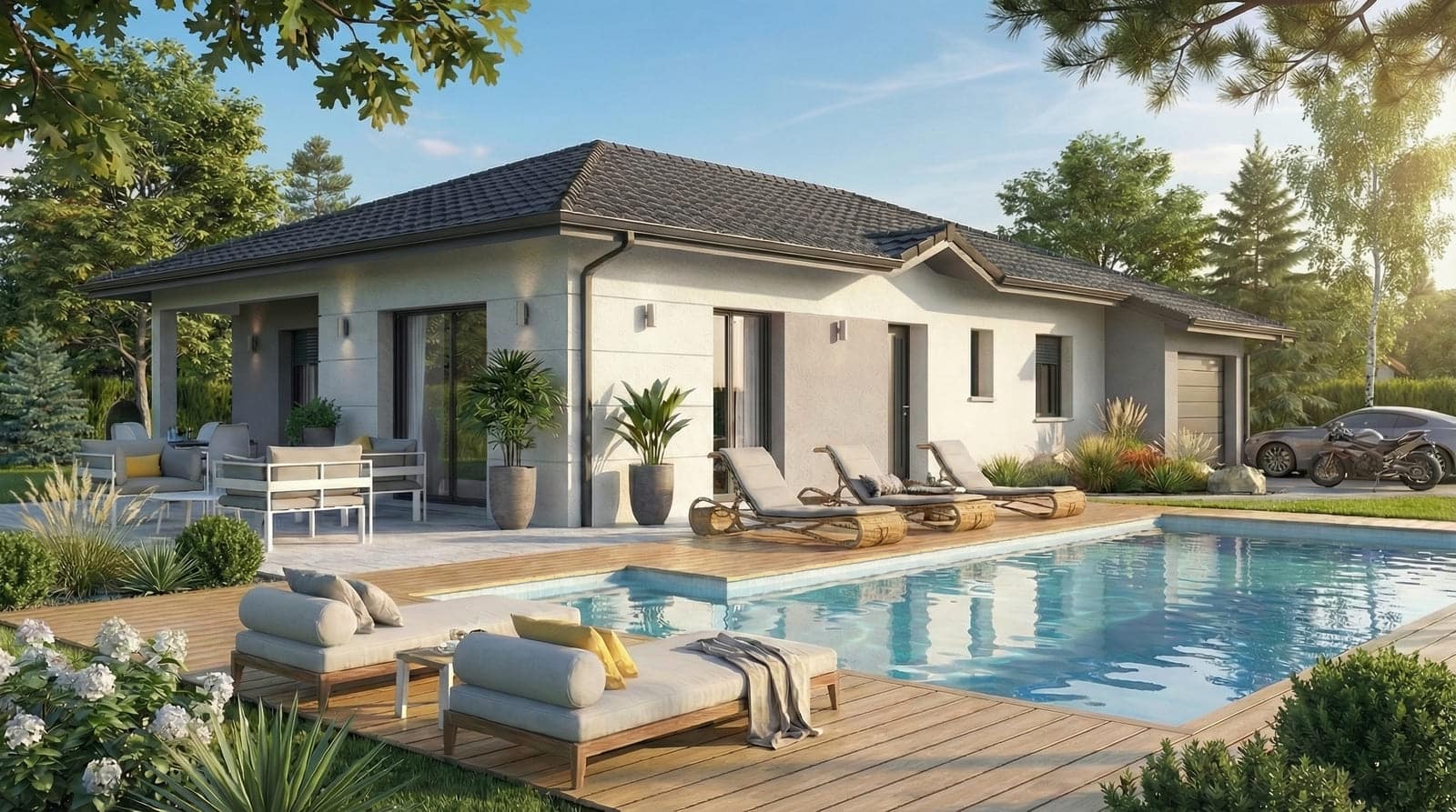 L’élégance d’une maison familiale généreuse et fonctionnelle Le modèle Pensée a été conçu pour répondre aux besoins des grandes familles ou des projets de vie intergénérationnels. Avec ses 5 chambres,…